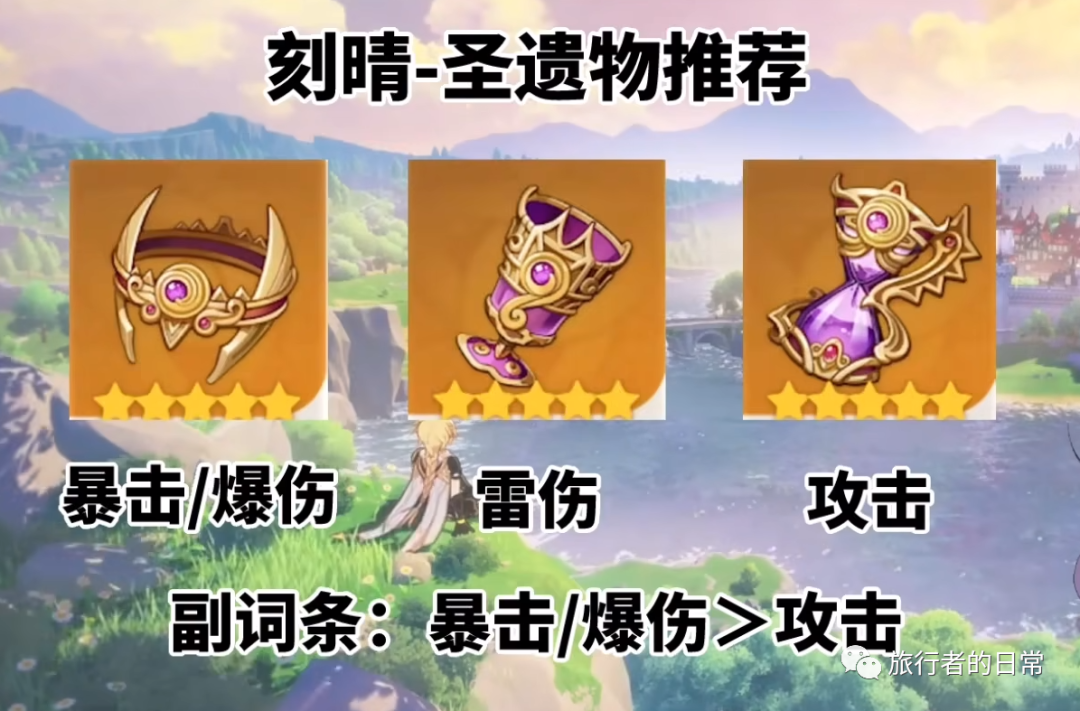 主词条:暴击/爆伤头,雷伤杯子,攻击沙漏