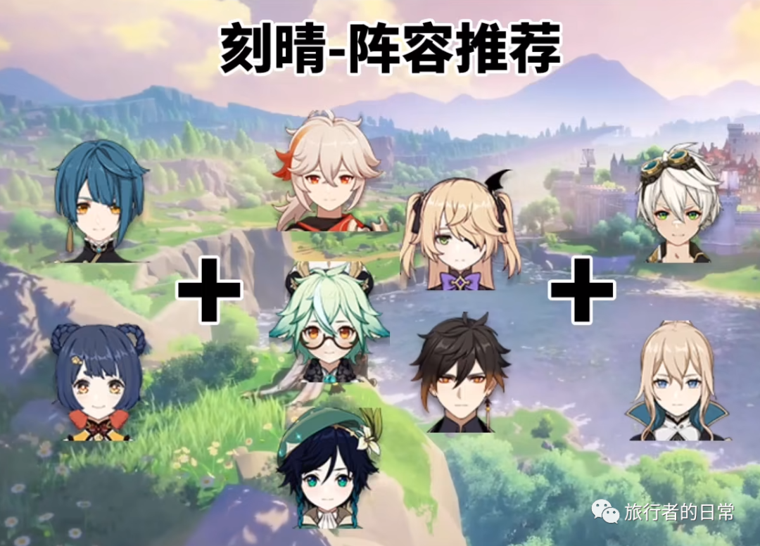 刻晴+行秋/香菱+万叶/砂糖/温迪/皇女/钟离+班尼特(6命以下)/琴