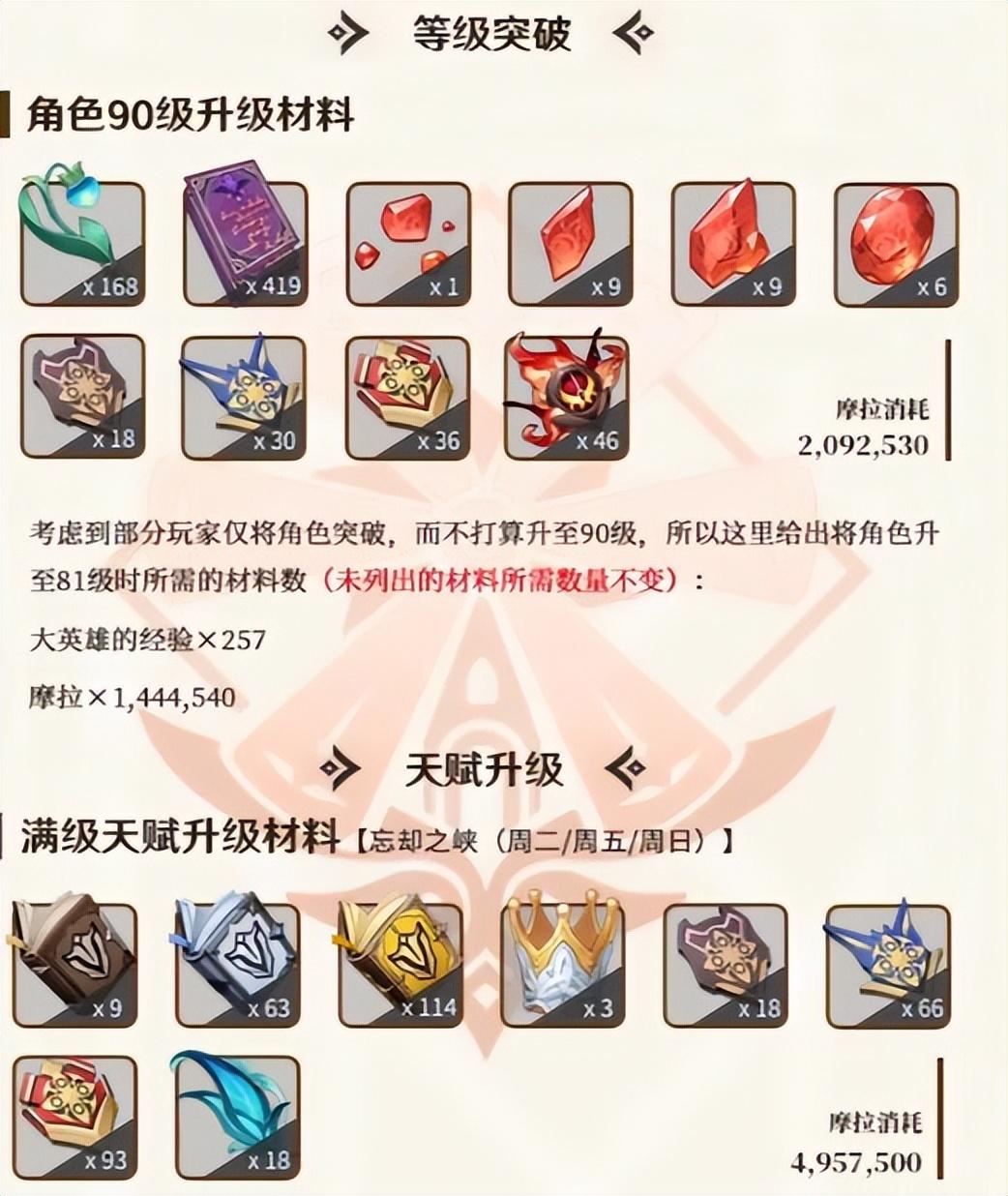 上图是迪卢克等级天赋材料突破需求总数,大家截图保存即可。