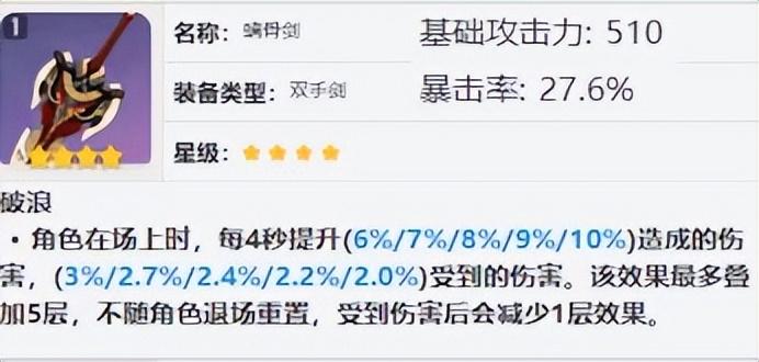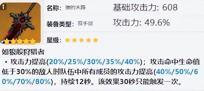 狼末攻击加成的副属性基本契合所有的双手剑角色,其属性和迪卢克也真的很搭,非常适合。
