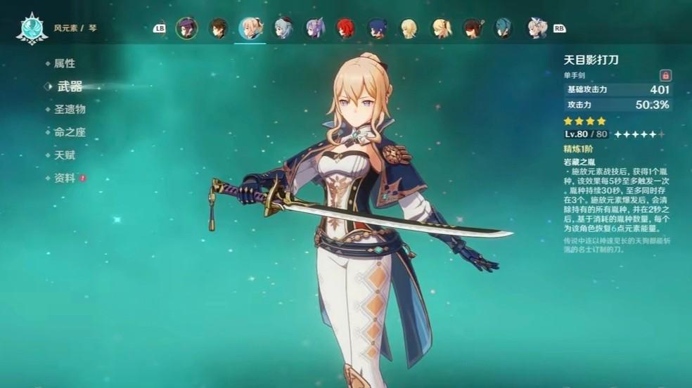 首先,天目影打刀这把武器虽然白值有点低,然而它的被动技能却足以弥补这个差距,只要满精练后,就相当于每次开大招后,最多能直接补回36点元素能量,即便队伍中只放着一只琴,只要拿着满精炼的天目影打刀,就能轻松达到无缝大招的离谱程度,非常适合给作为速切副C的琴来使用,特别是选择性较少的平民玩家尤其适合。天目影打刀的副属性中55.1%的攻击力加成,也是数一数二的强,并且它还是把锻造武器,让琴带着一把高精炼的天目影打刀,只要你不会被怪一下打死,基本上想死都难,相当于随时摆着一根能让人起死回生的急救针一样。