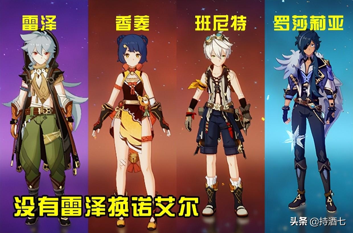 我推荐的开荒队伍:雷泽(或诺艾尔)、香菱、班尼特(或丽莎)、凯亚。