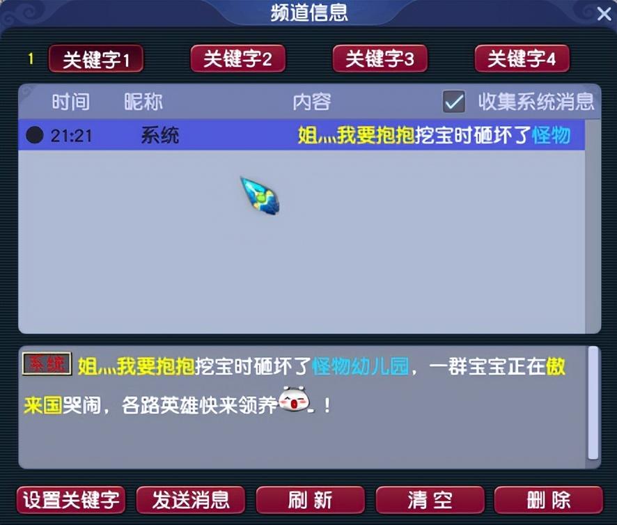 第二:设置关键字,(最多可以同时设置4个不同的关键字信息收集,比如需要某样道具,也可以设置相应的关键字,等待提醒)设置成功扣除30点体力。如图所示: