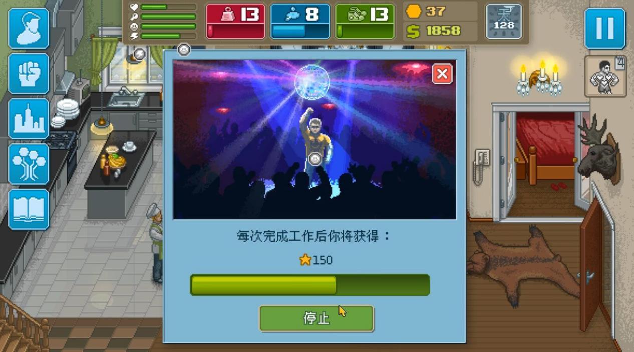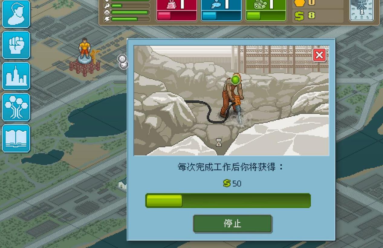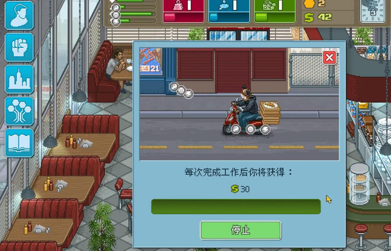 《拳击俱乐部》既然是一款经营模拟类的游戏,那么赚钱这一属性,一定是非常重要,在这款游戏中,赚钱还分为两个阶段,第一种是平民百姓般的打工赚,用转来的金钱维持自己在健身房和食物的开销,因为除了打拳也没啥文化,只能通过一些体力活来获得金钱。