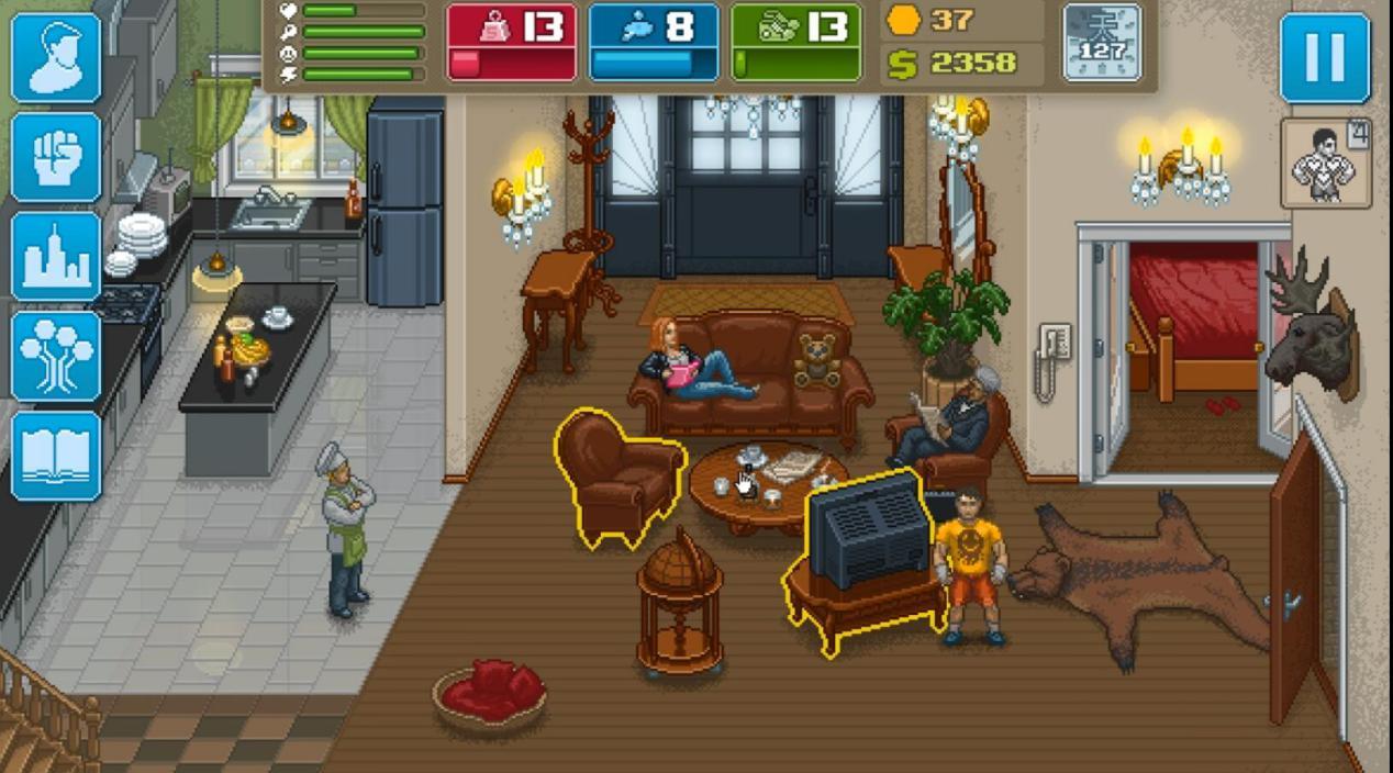 《拳击俱乐部》游戏中,除了近乎循环的:打工——赚钱——健身房——花钱——变强——打比赛——打工的循环之外,还有像之前说过的,送餐解锁隐藏任务,遇见忍者神龟的小彩蛋。而像这样的趣味任务还有不少,在健身房锻炼的时候,帮助一个叫做罗伊男人做完器械运动后,因各种各样的事情,两个人变成了无话不谈的基友,更是能去基友家免费撸串恢复体力,但是恢复的效果聊胜于无,如果实在没钱,倒是可以去躺一会。这就是基友的全部了么?并不是,最重要的是男主在基友家认识了基友的妹妹,并追求成功,把其变成了自己的女友。