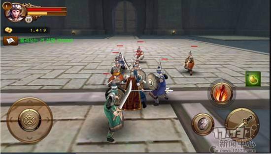 刚进入游戏,就是满屏的韩文(进入游戏之后,可以在游戏设置里更改为中文),可供选择的人物有三个,从PP浸淫三国三十年的经验来看,第一个应该是~~拿着方天画戟的赵云,是的,拿着方天画戟的赵云。其他两个分别是关羽和张飞。不论选哪个角色,游戏中剧情都是一样的,只是攻击的动作和技能有所不同。游戏中只有三个角色可以选择,对于想要感受吕布等猛将的玩家来说有一些遗憾。希望开发商在以后的版本中能增加角色的选择,提高游戏的可玩性。