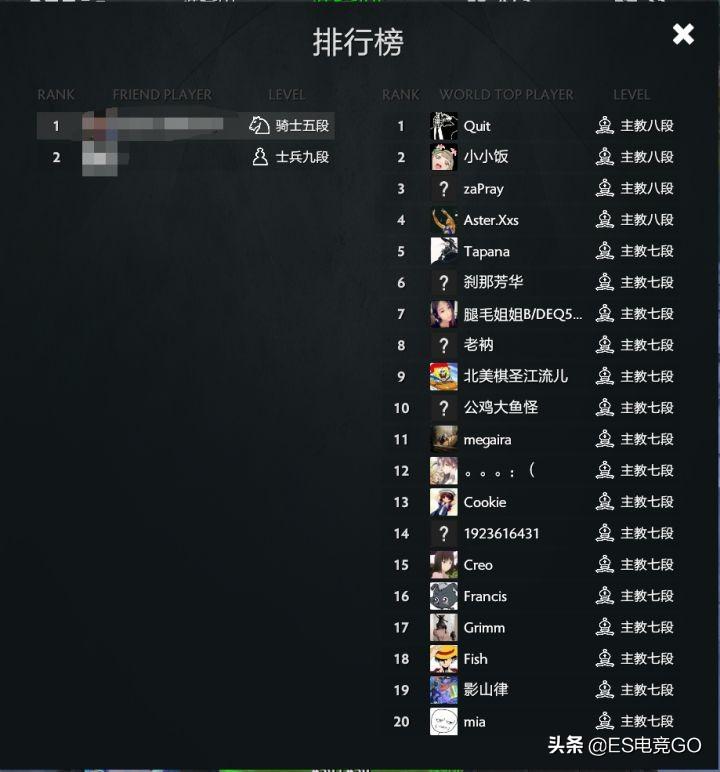 奖杯符号为排行榜,左侧可以查看你在好友中的排名,右侧也可以看到玩家们的天梯排名。