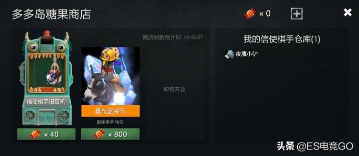 最右侧是信使棋手仓库,玩家通过每日的对弈,可以获取不定数目的糖果(每日上线为10个)使用糖果可以换取信使棋手皮肤和特效,分别需要消耗数量不等的糖果。