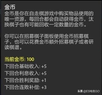 回合收入:回合基础收入+利息收入+连胜奖励/连败补偿 组成了你每回合能够获得的金币。利息收入即你结束回合时的金币的10%。利息收入最高为5,所以当你的金币囤积超过50后,尽量把这些富余的金币转化为你的棋子。