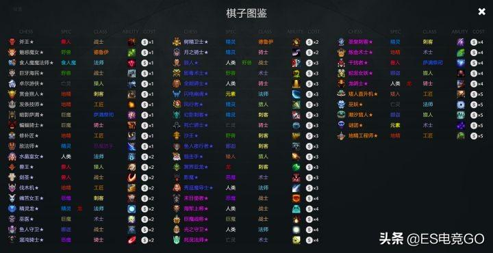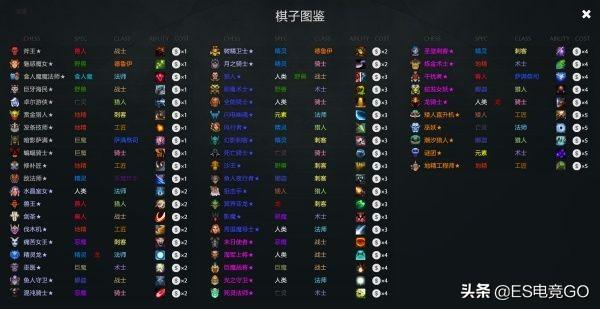 在游戏界面左上角的问号左边,玩家们熟悉的记分板变成了棋子图鉴,点击可以查看所有棋子的种族和职业,棋子技能以及棋子所需要花费的金币