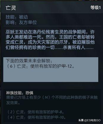 所有棋子都带有不同种类的种族和职业,基于其Dota2背景,比如狼人同时具有人类和野兽的种族,以及战士职业。通过多个同种族或职业的多个棋子组合,可以形成各种类型的Buff以及Debuff,这也是刀塔自走棋的主要玩点。Buff和Debuff都是叠加的,比如2亡灵Buff减8甲,4亡灵Buff减10甲,也就是说当你拥有4个亡灵种族棋子时,总共减18甲。