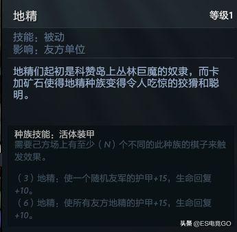 地精4雄都是低等级棋子,前期很容易找齐,所以前期很强势。往后期走,有GA减甲,飞机炸弹人AOE清屏,工匠和地精的高强度回血和护甲让地精套路可以稳定恰人。前期地精找不到tk输出的话,推荐小黑(小黑容易找,后期配合死灵法再搭GA减甲很可观,如果到9级也可以配合3猎人,如一姐,潮汐,又能提供伤害也能加强控制)。不过地精很头疼前期找不到伐木机发条,很容易被别人断,导致前排不够肉。