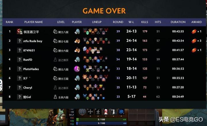 下图可以在游戏界面最右边看到,骑士三段为棋手段位,迷之棋手代表还未出分(类似于Dota2天梯系统),绿条和百分数代表剩余血量,FAILED代表血量为0,已经失败。