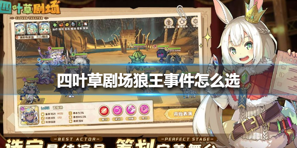 四叶草剧场狼王事件怎么选?在四叶草剧场游戏中狼王事件有很多选择项,但是很多玩家不知道怎么选最好,那么想知道的就和小编一起来看看吧。