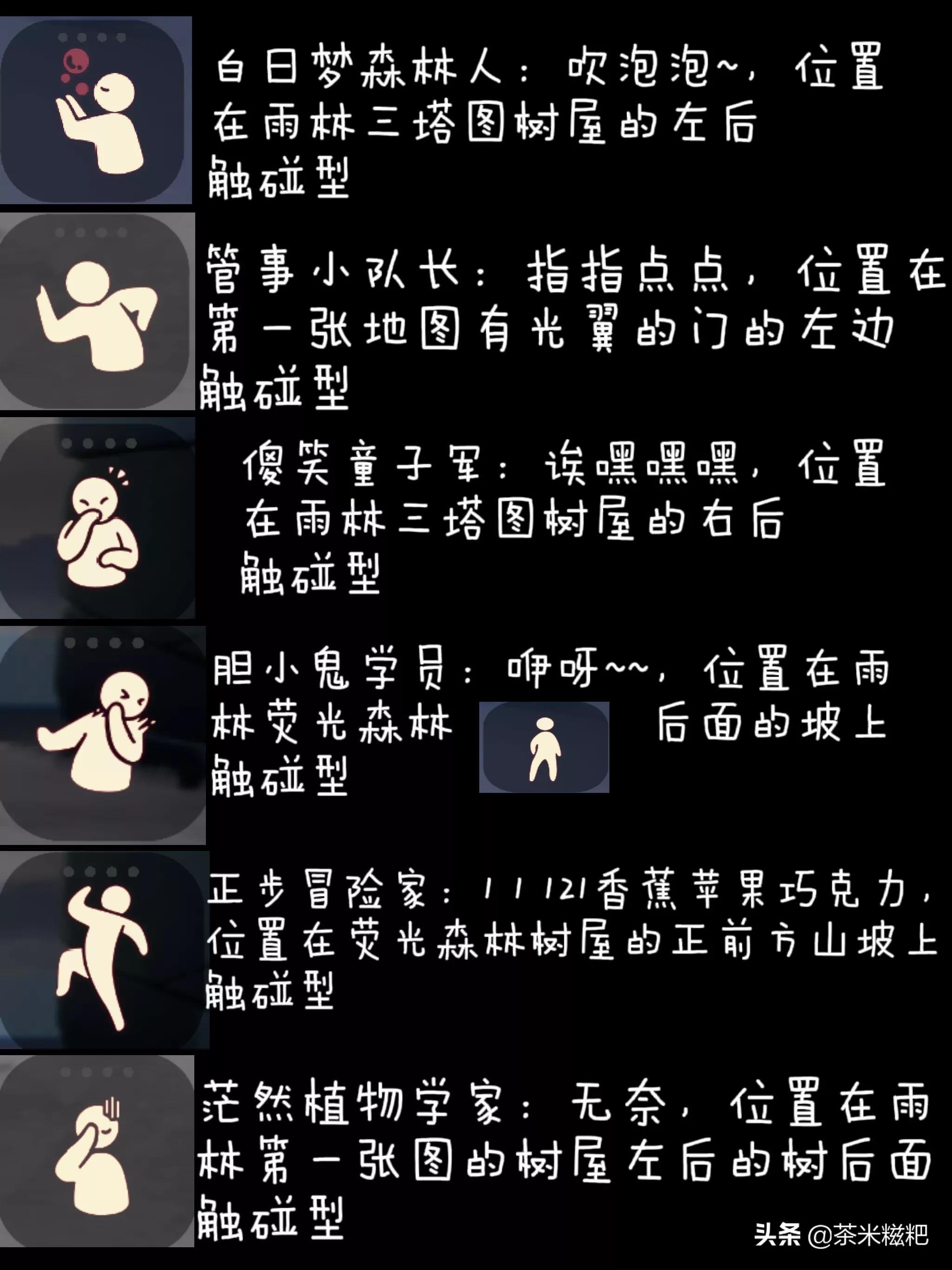 动作↴(大树屋入口位于雨林入口右侧小山丘/三门图树屋左侧地洞/荧光森林左侧木屋里/三塔图大揪揪先祖上面的树屋后面。入口有屏障)