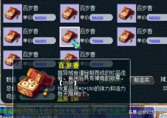 2、每天必吃一个海马(可以去牧场换便宜些)、一个百岁(有条件可以自己用食谱做便宜些):