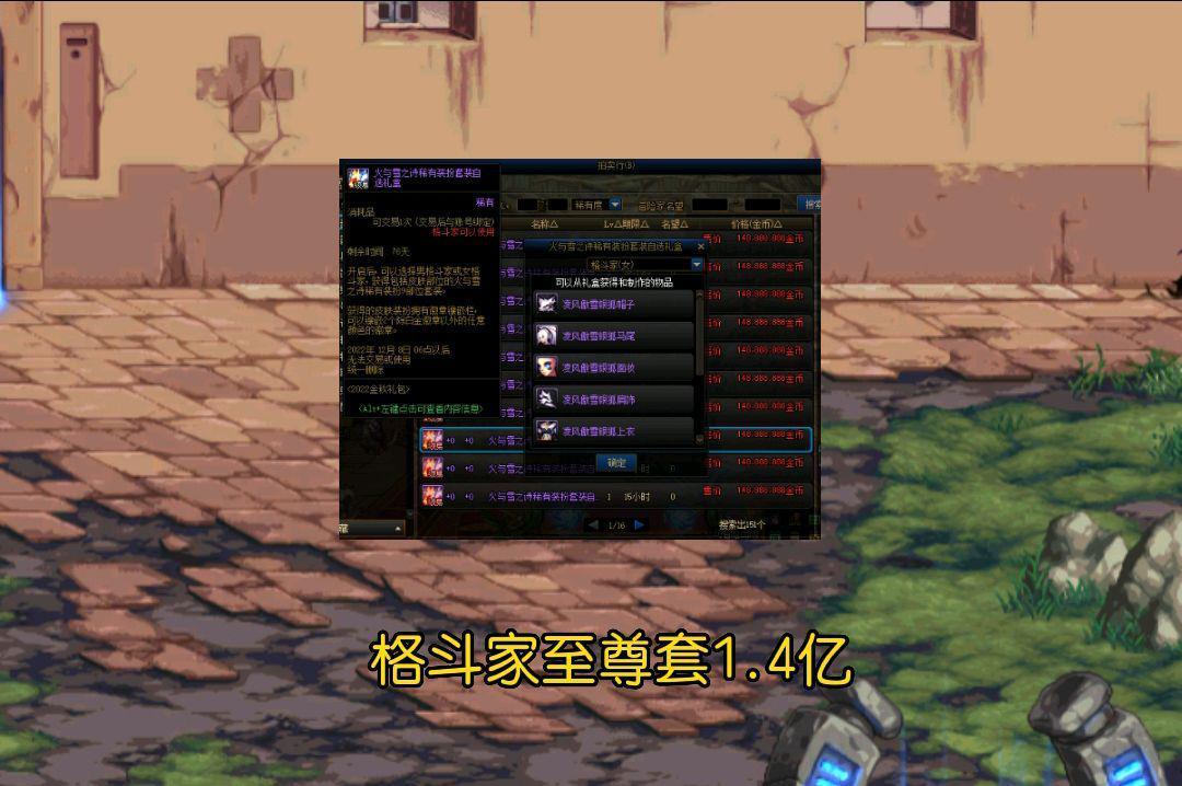格斗家至尊套名为「火与雪之诗稀有装扮套装礼盒」,拍卖行极价格1.4亿。