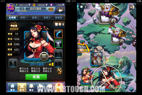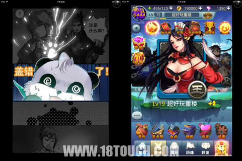 游戏以漫画开场,用时下流行的逗B对话交代了故事背景,身为主角的你,阴差阳错背负真龙印记,开始拯救三国的任务。相对各类三国背景改编,紧跟潮流才是王道,幽默诙谐的语气更容易让玩家融入游戏。但有一点略困惑,漫画的分辨率较为模糊,小编猜测应该是ipad的适配问题。在如今端游厂商介入下的手游环境,画面是衡量游戏的重要标准,千万不可马虎哦~游戏的整体UI布局较为精简有序,所有系统入口都能在界面上找到。再加上欢快灵动的BGM,结合故事背景,让游戏充满了喜感,顿生心情愉悦。