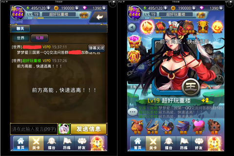 前方高能,切莫惊怪!当游戏屏幕上方划过一条弹幕的时候,小编被惊住了,接着爆喜,终于有厂商发现了弹幕这个划时代的创意。随后脑洞大开,如果游戏火爆,整体素质下降之后,全屏飘过看妹加Q加微信的场景,这……简直不要太爽!当然,弹幕飘过最大的亮点在于玩家的交互,沟通再也不会被无视,反馈也不再为0,此举对于游戏的生态循环有着良好的推动作用,为何你来的如此晚。
