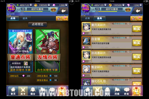 另一点需提到的就是游戏的内购系统,作为卡牌游戏,抽卡(十连抽)自然是钻石的原动力,为了更新武将,提升神兵值,谁能挡我充值!其次,除了武将购买以外,钻石就剩下个开箱子博运气为主要途径。如果你是资深的非R玩家,你也不必担心,游戏的活动频繁,赠送的钻石也超多,你可以非常滋润的体验下去,岂不快哉!