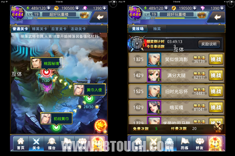游戏最直观的感受莫过于在副本中的战斗,脱离卡牌游戏数值化的桎梏,各种debuff、强力机能、站位都能让你全面体验到策略的需求,打不过,我还可以真人配音吼啊(开玩笑)~自然武将升级、进化或是升星都是提高神兵值的途径,只要你有一颗强者的心,道路自然畅通无阻!厌倦了PvE,别捉急,PvP还没体验过,怎能说自己曾经无敌过!在竞技场里,天梯般的制度,强中自有强中手。如何排兵布阵、克敌制胜,就看你有多大本事了~青梅煮酒论英雄,刀光剑影冲天梯!