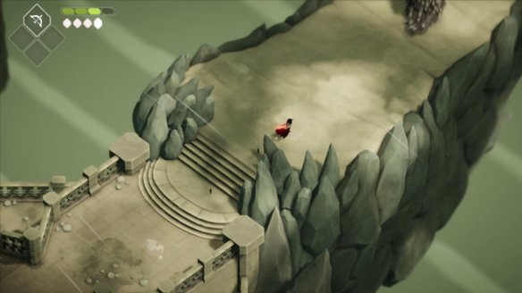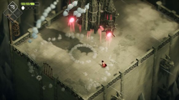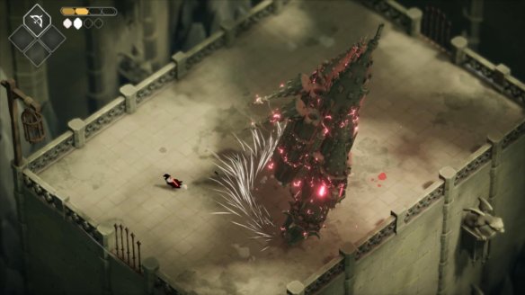 进入大门后遇到BOSS门扉守护者,BOSS有四种攻击方式,第一种为原地旋转翻滚即可躲避。