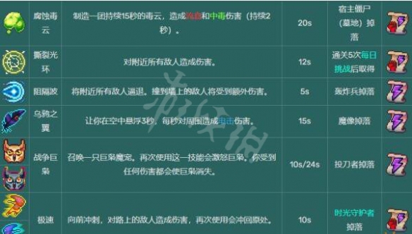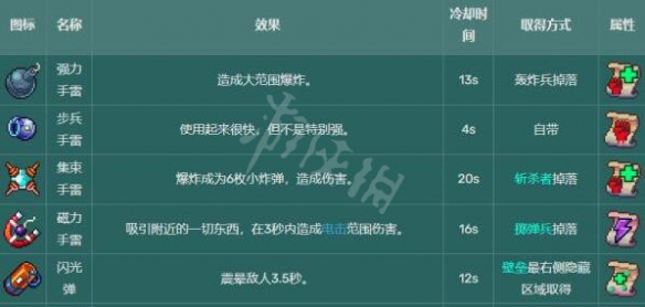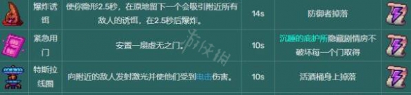 技能共有3种,分别为放置类技能、手雷及力量技能。