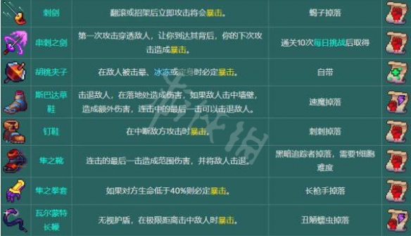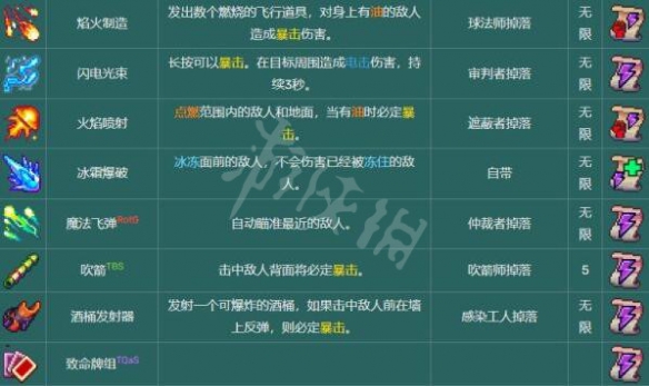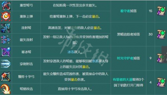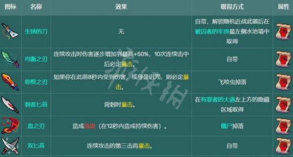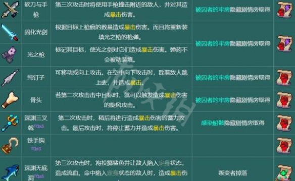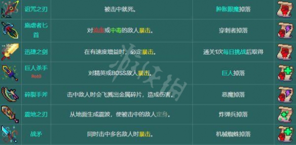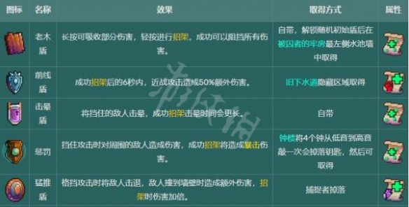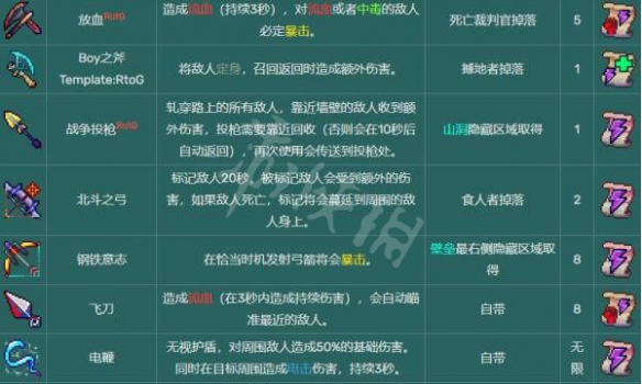 游戏中的武器主要分为近战武器,远程武器和盾牌三类。