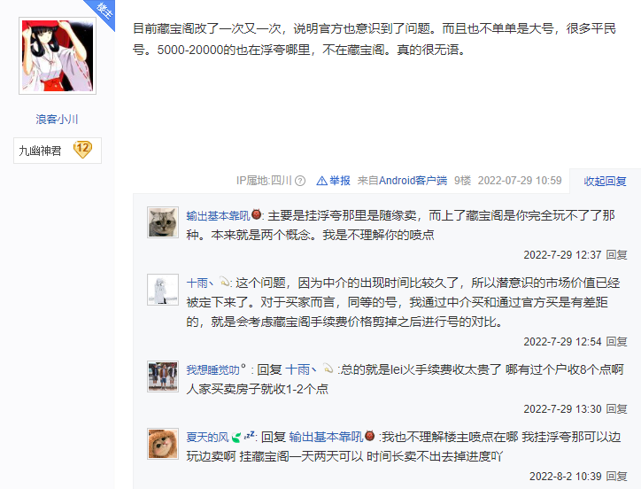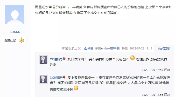 不过,虽然网易的藏宝阁系统已经非常出色了,但是还是有许多“中间商”存在,他们利用替人估价、帮人做担保的方式,在玩家正常的账号买卖中大肆牟利。有些黑心中介为了能利润最大化,还经常利用信息差来“PUA”买卖账号的玩家,通过疯狂打压价格的方式促成交易。像是网易的古风网游《逆水寒》中,就曾有专业的黑心团伙,用压低游戏账号价值的方式大肆渔利。