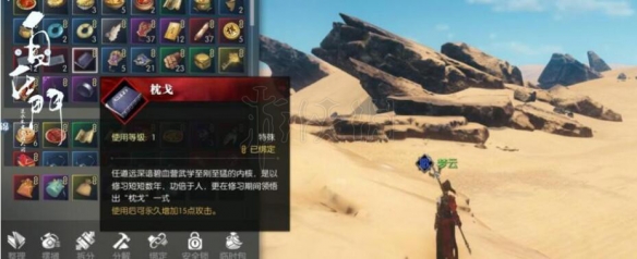 完成任务流程之后,我们会获得一本奇遇奖励书:枕戈,属性可永久增加角色15点攻击力,还算不错。