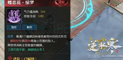 当然,不仅这4个技能能切换,还有一个技能也是可以切换蝶恋花-惊梦,但是需要多一步操作,那就是落花舞轻风这个技能,当我们积累5个小蝴蝶后使用落花舞轻风,蝶恋花会立马切换成蝶恋花-惊梦,但是这个技能释放时间比较久,切换后会立马变成蝶恋花-绮罗(大炮),我们需要释放一个治疗技能来切回蝶恋花-惊梦,所以比较麻烦,因此建议大家带翩飞这个技能,CD短又好用。