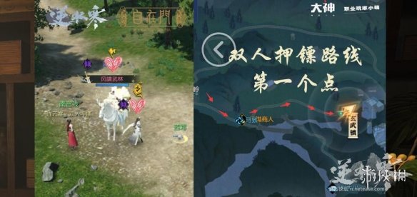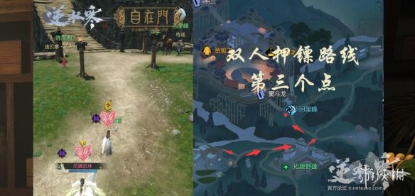 注:双人押镖的路线和正常单人押镖的路线是不一样的,只有少部分是一条路线,在本篇攻略内,小萌会为大家标注,然后,双人押镖无需打怪,全程护送走路即可,轻松方便。