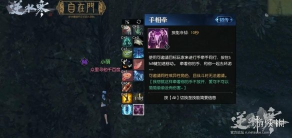 如图上所示,玩家对另外一位玩家使用“手相牵”,可开启下一个阶段任务流程。