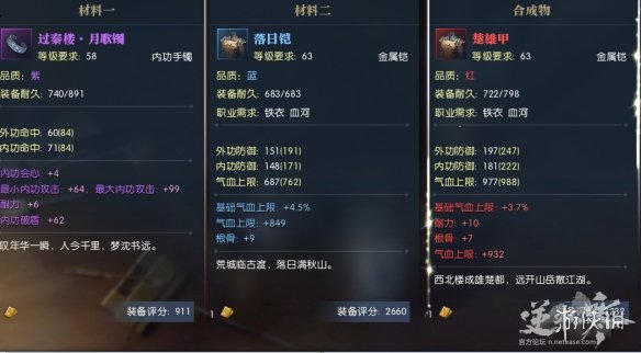 以上3血一耐合成方法,注意部分装备部位的根骨、气血,如鞋子、头、腰带等。