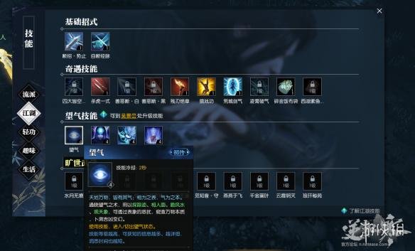 首先按下键盘上的K键,选到江湖页面这个望气技能看到没有!给他拖出来!这是你日后发家致富的关键技能!
