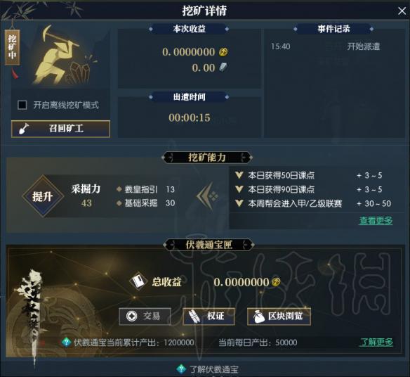 伏羲通宝藏于九州地脉深处,须持有大宋逆水寒的采矿许可证,开设专属的地下矿洞,方可进行地下矿脉的开掘。且由于伏羲通宝埋藏至深,一般需要雇佣和派遣专业的采矿能人(矿工),前往深层矿脉探寻采掘。每次派遣矿工携带的补给最多可出遣48小时,48小时内如果不召回矿工,他也将自动返回。
