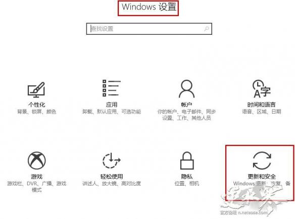 Step1. 机器联网后,打开设置,选择更新和安全。