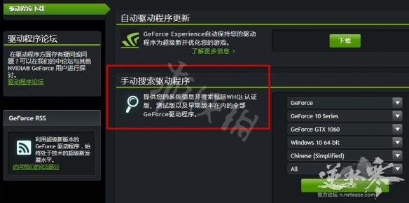step1.点击下载链接:https://www.geforce.cn/drivers ,选择手动搜索驱动程序。