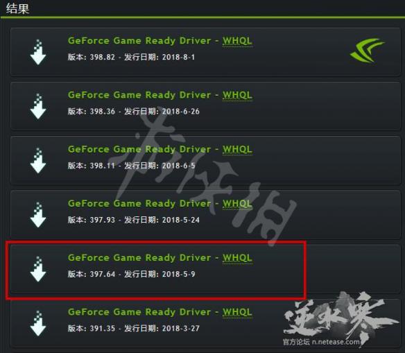 Step3.选择结果中的版本:397.64-发行日期:2018-5-9。