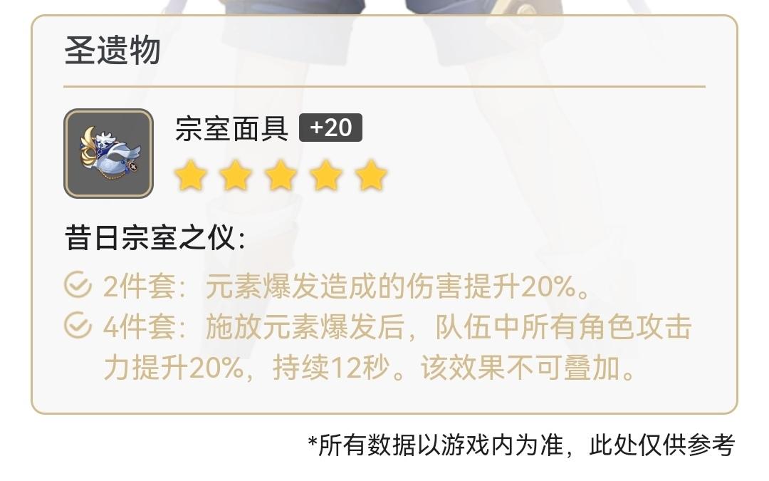 毕业圣遗物:宗师四件套,提升大招伤害的同时,进-步给队友增加攻击力!
