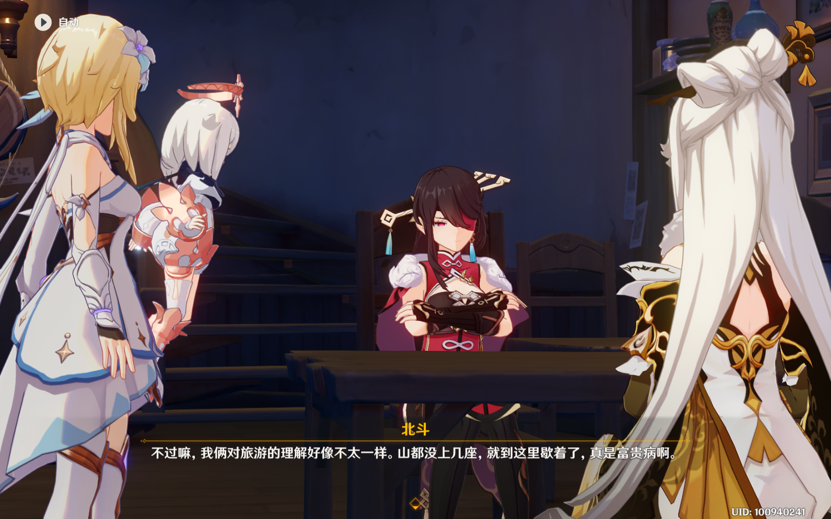 凝光与北斗:这2人组的剧情是最有意思的,同时也是彩蛋最多的,凝光拉北斗来旅游,结果没爬几座山就逛店铺,果然这很凝光。