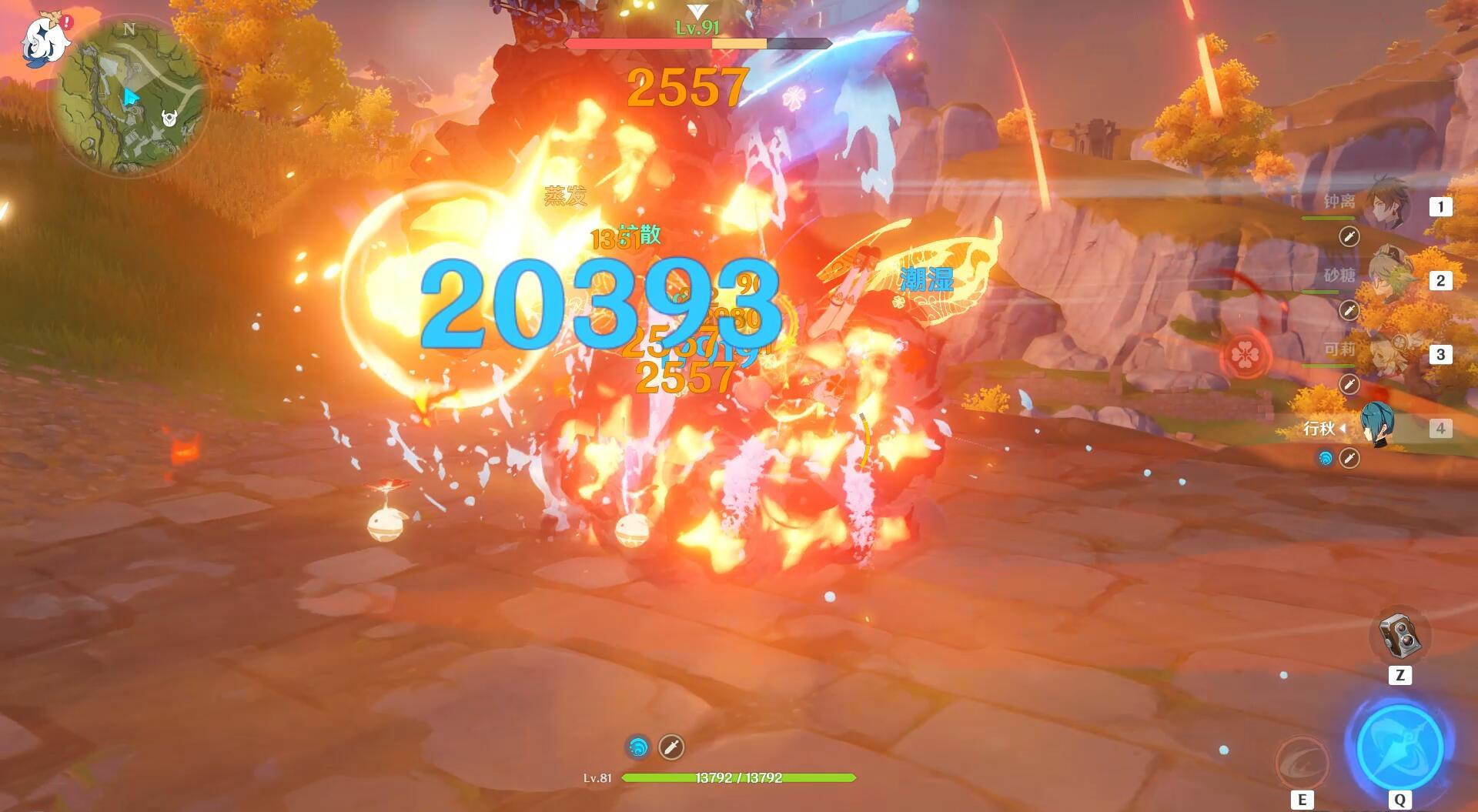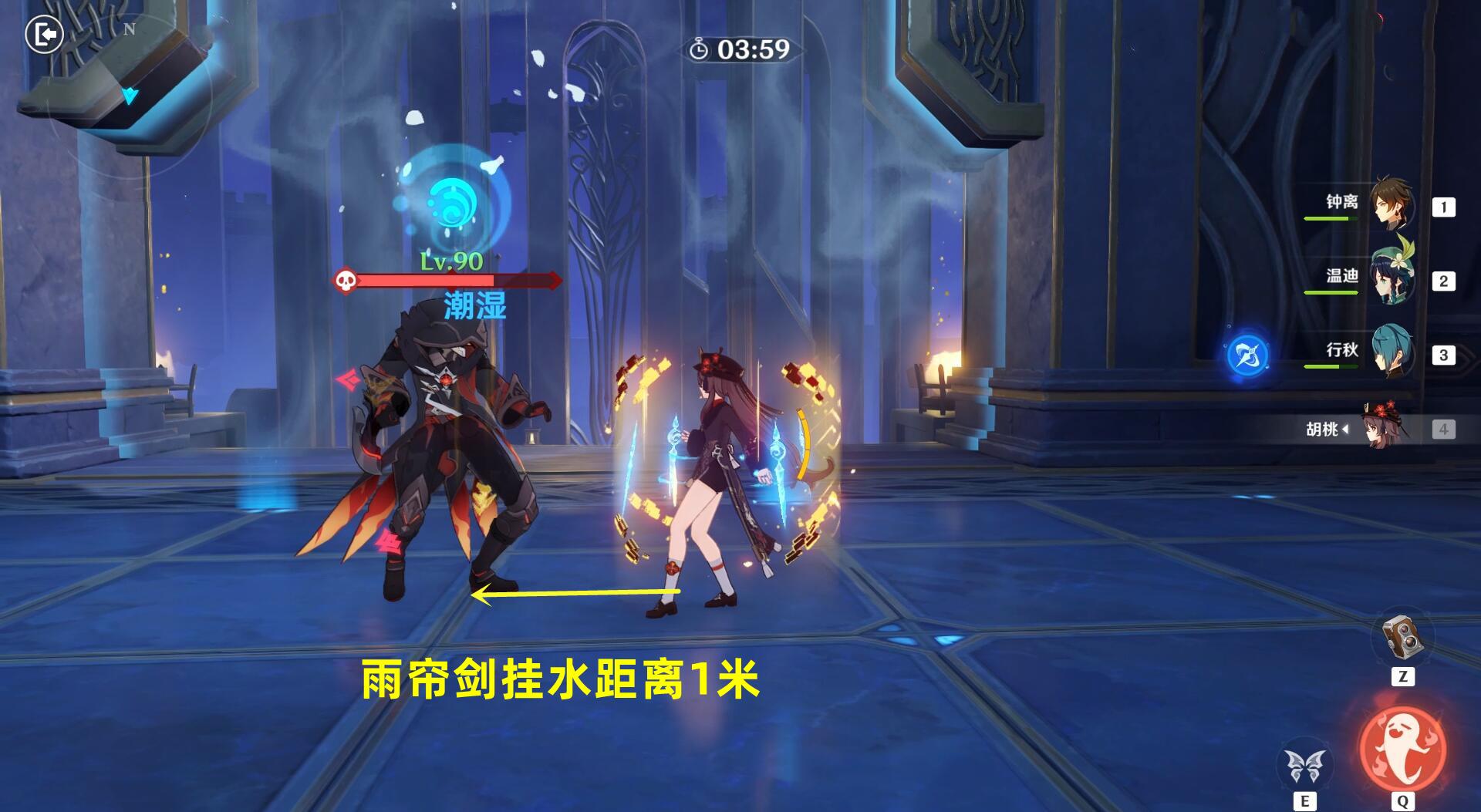行秋E技能第1剑后触发蒸发反应后,敌人身上不会残存元素,在第2剑之前给敌人上火元素,即可触发“双蒸发”。