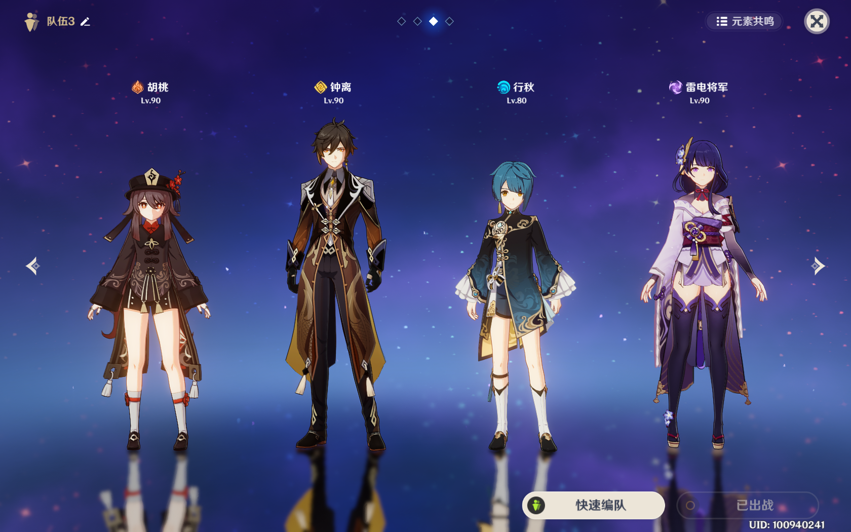 胡行钟阵容:胡桃+钟离+行秋,第4名选择性比较多,雷神,可莉(组双火),云堇等角色都行。这个属于行秋的经典阵容,优秀的挂水能力能够帮助胡桃打蒸发伤害,大幅提升输出。
