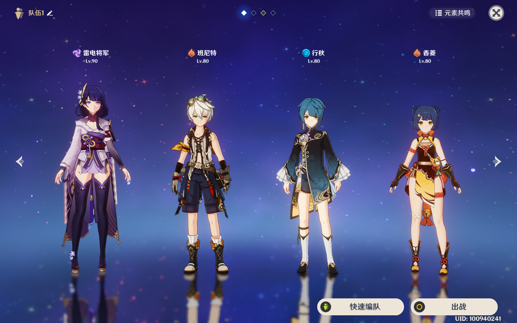 雷神国家队:雷神+行秋+班尼特+香菱,同样是经典阵容,同时是下深渊的高性价比平民阵容,这个阵容对于行秋与香菱的命座要求比较高,虽然0命行秋也能用,但是满命伤害最大化用的舒服。