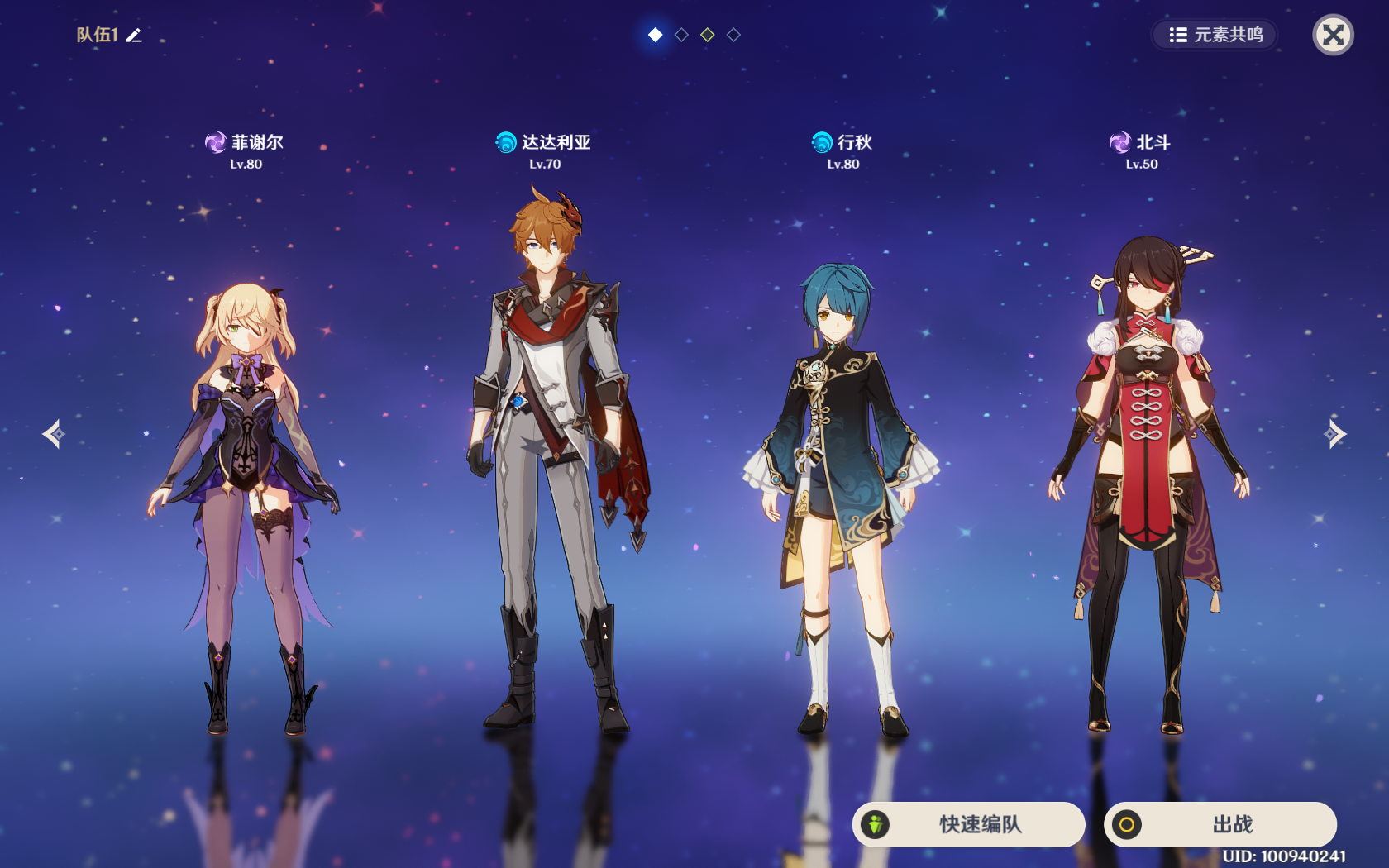 魔王武装阵容:公子+行秋+北斗+菲谢尔,比较早期的阵容,不过也有着不错的适用性,对于没有雷神却有公子的玩家来说这个阵容是很不错的。