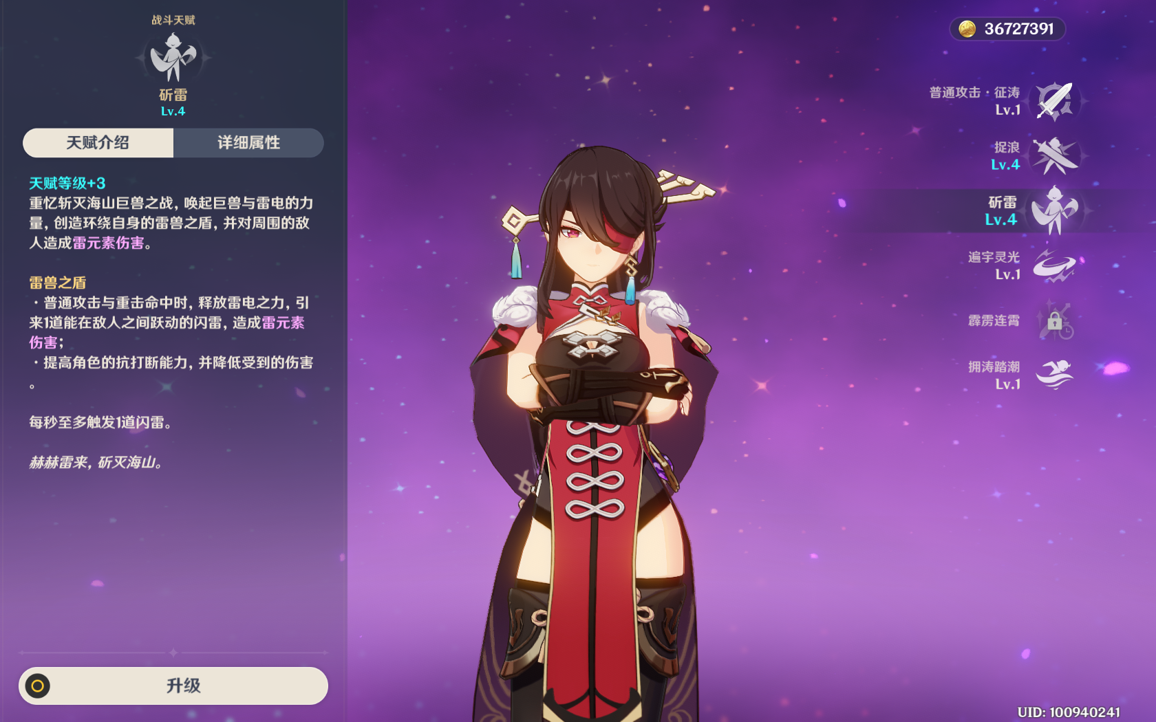 练了不亏的一位角色,在武装队中有着出色表现,有爱玩家也可以在前台耍大剑玩下,总得来说脱手副c都能用很久,圣遗物没有合适绝缘话用2如雷2宗室就好,毕竟绝缘太多人要用了。