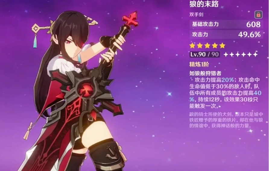 5星武器优先选择天空之傲缓解北斗充能压力,还能提高一定的攻击力,另外是狼的末路大幅度提高攻击力,还能给全队提高攻击力。
