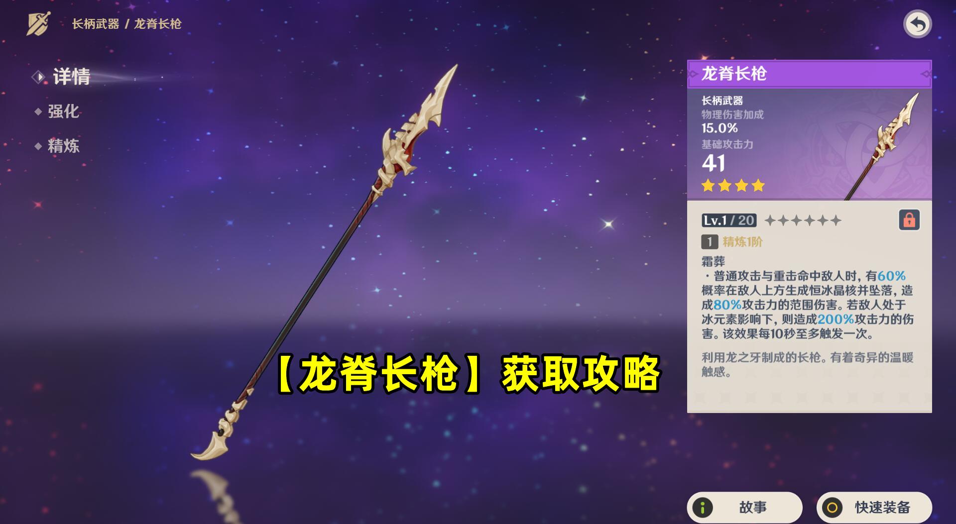【雪葬的星银】、【龙脊长枪】、【忍冬之果】是龙脊雪山系列的3把4星武器。一般来说,游戏前期,玩家氪金量较少,选择的余地也不多,这3把武器在尤其前期可以发挥一些作用,但不推荐过度培养。
