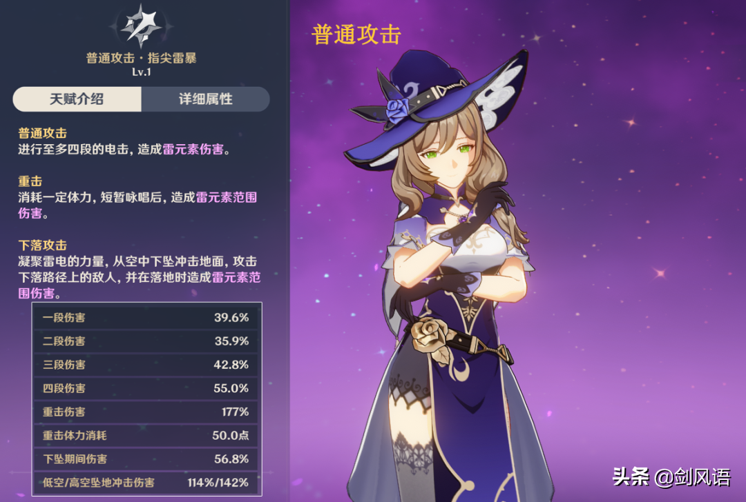 普攻四段雷元素伤害。重击,消耗体力,造成雷元素范围伤害。