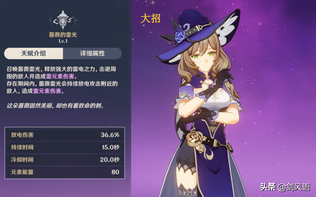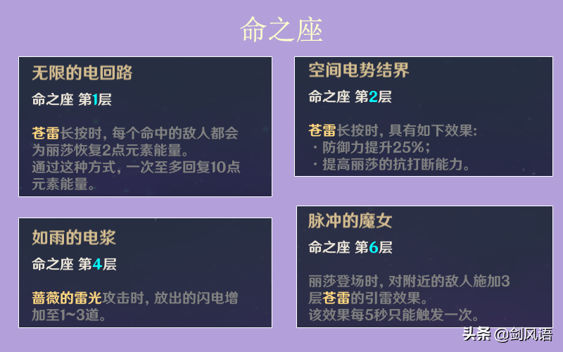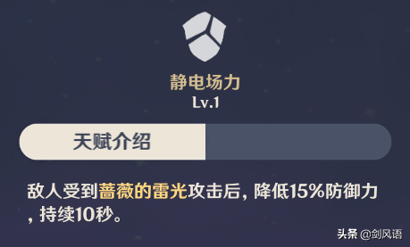 2.突破固有天赋,如下图,在蔷薇的雷光攻击后,降低敌人15%防御力,这是丽莎打副C的核心技能,降低敌人防御力,相当于降为打击。收益极高。